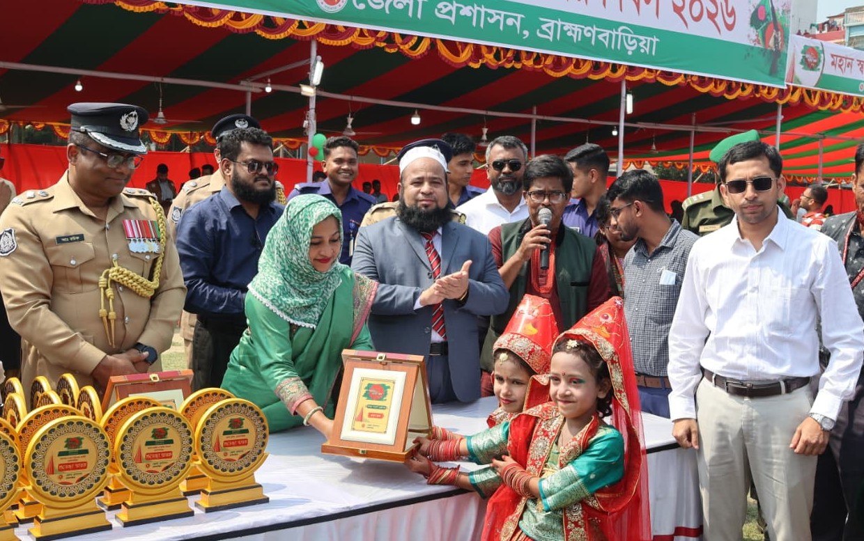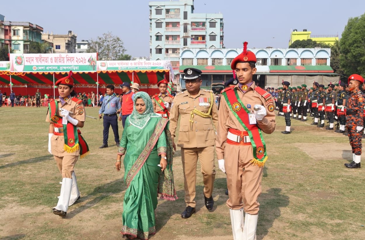 মহান স্বাধীনতা ও জাতীয় দিবস-২০২৬ উপলক্ষে ব্রাহ্মণবাড়িয়া নিয়াজ মাহমুদ স্টেডিয়ামে বর্ণাঢ্য কুচকাওয়াজ অনুষ্ঠিত হয়। সকালে জাতীয় পতাকা উত্তোলনের মধ্য দিয়ে কুচকাওয়াজের আনুষ্ঠানিকতা শুরু হয়।