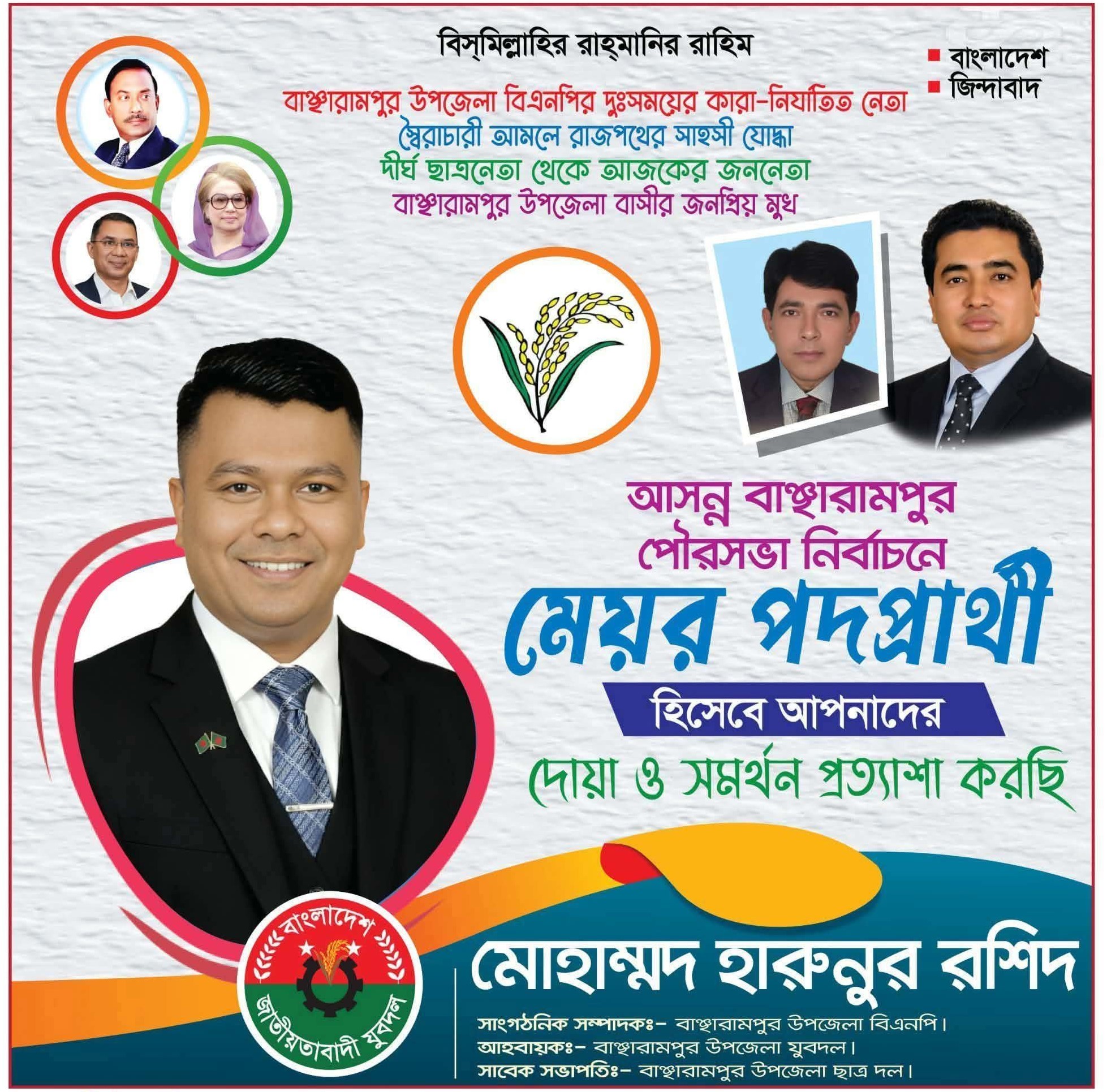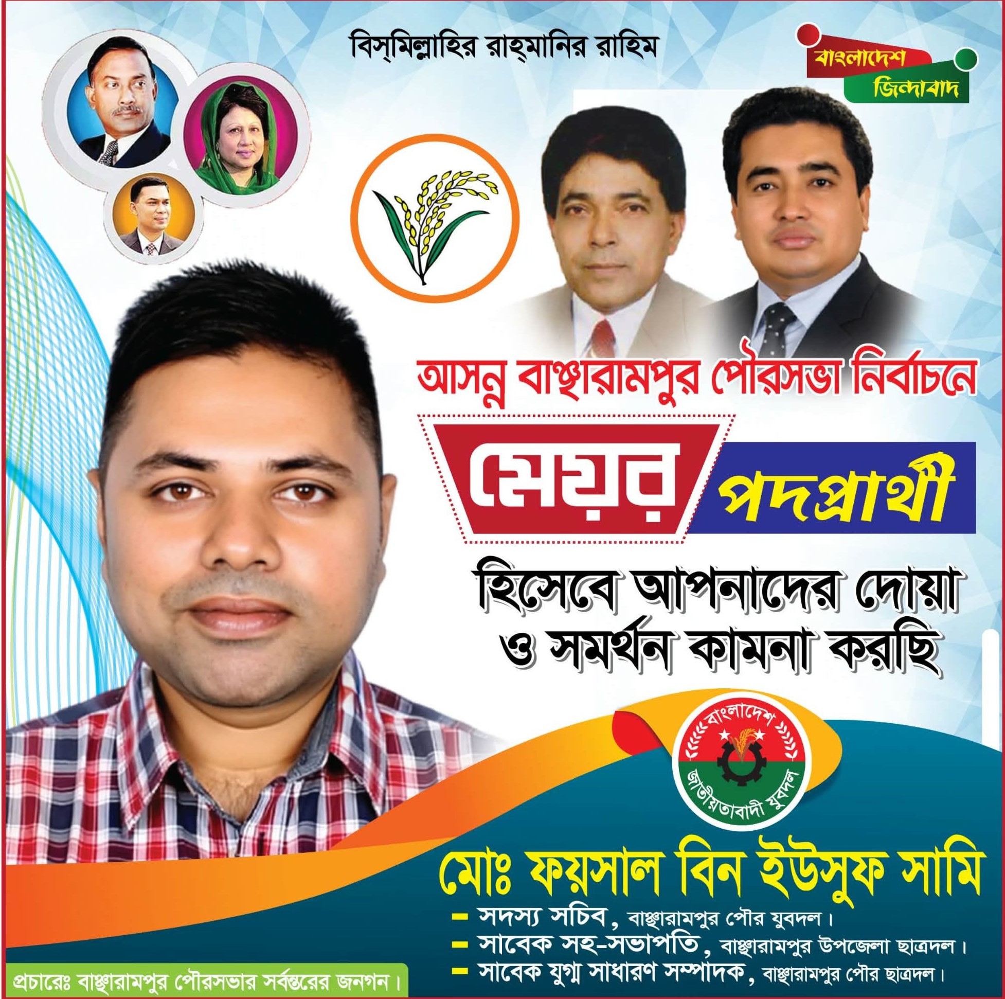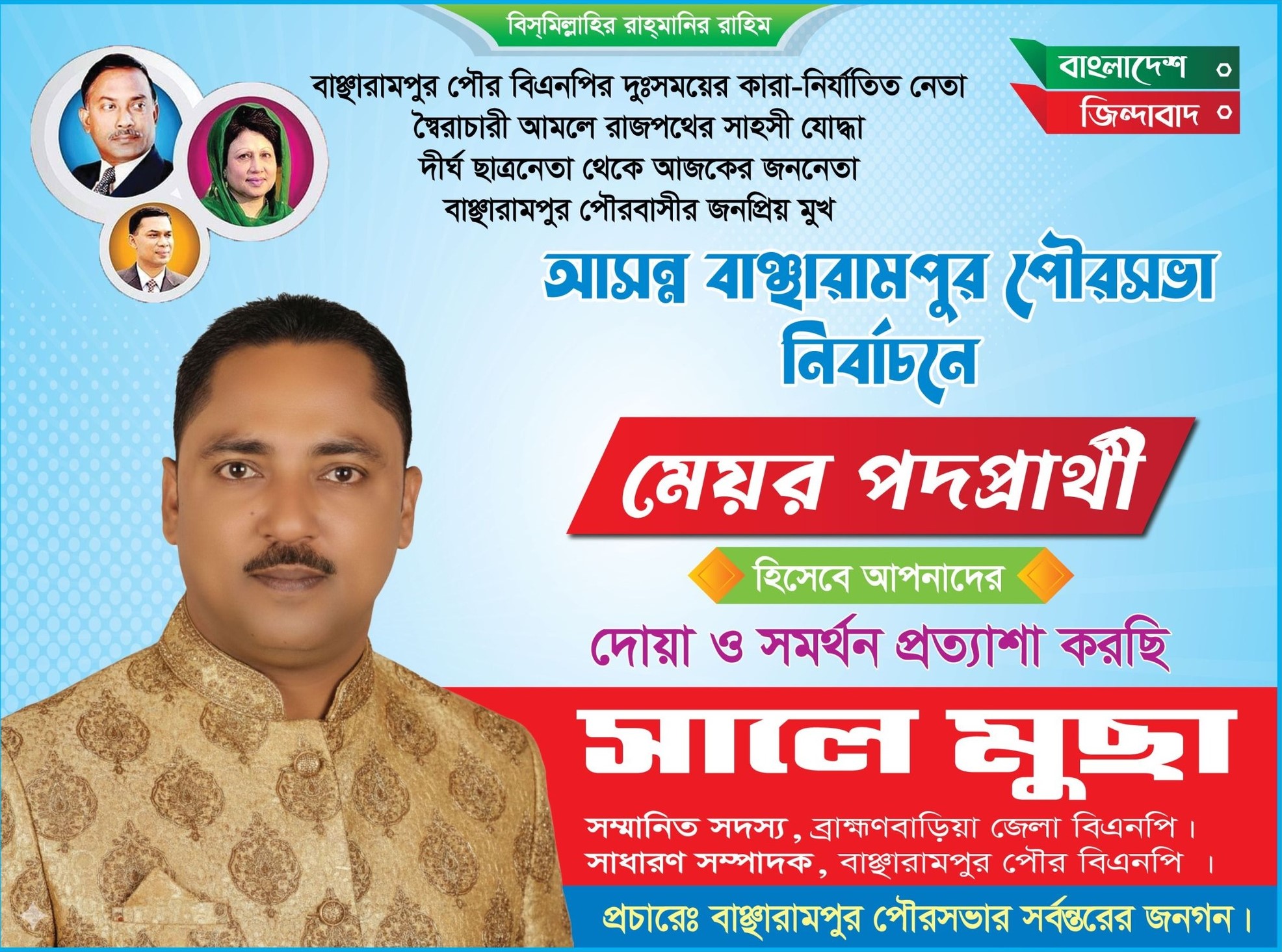 বাঞ্ছারামপুর পৌরসভা নির্বাচনে মেয়র পদে সম্ভাব্য প্রার্থীদের তালিকায় আছে বাঞ্ছারামপুর পৌর বিএনপির সাধারণ সম্পাদক সালে মুসা, উপজেলা বিএনপির সাংগঠনিক সম্পাদক হারুন অর রশীদ, ঢাকা মহানগর উত্তর ছাত্রদলের সাবেক যুগ্ম সাধারণ সম্পাদক লিটন সরকার, বাঞ্ছারামপুর উপজেলা বিএনপির সাবেক যুগ্ম সাধারণ সম্পাদক জালালউদ্দিন বাদল, বাঞ্ছারামপুর পৌর যুবদলের সদস্য সচিব ফয়সাল বিন ইউসুফ সামি, পৌরসভার কাউন্সিলর পদে ১নং ওয়ার্ডে মাহবুব হাসান বাবু, ২নং ওয়ার্ডে রফিকুল ইসলাম সেন্টু, ৩নং ওয়ার্ডে মো. বাবুল মিয়া, ৪নং ওয়ার্ডে নাজের আলী, সাহাদাত সরকার, ৫নং ওয়ার্ডে সালাউদ্দিন আহমেদ বাসু, মো. মাহবুব, ৭নং ওয়ার্ডে হেলাল আহমেদ, ৯নং ওয়ার্ডে মো. বিল্লাল হোসেন, ৪,৫ ও ৬নং ওয়ার্ডে মহিলা কাউন্সিল পদে পৌর মহিলা দলের সাধারণ সম্পাদক বিউটি আক্তার।