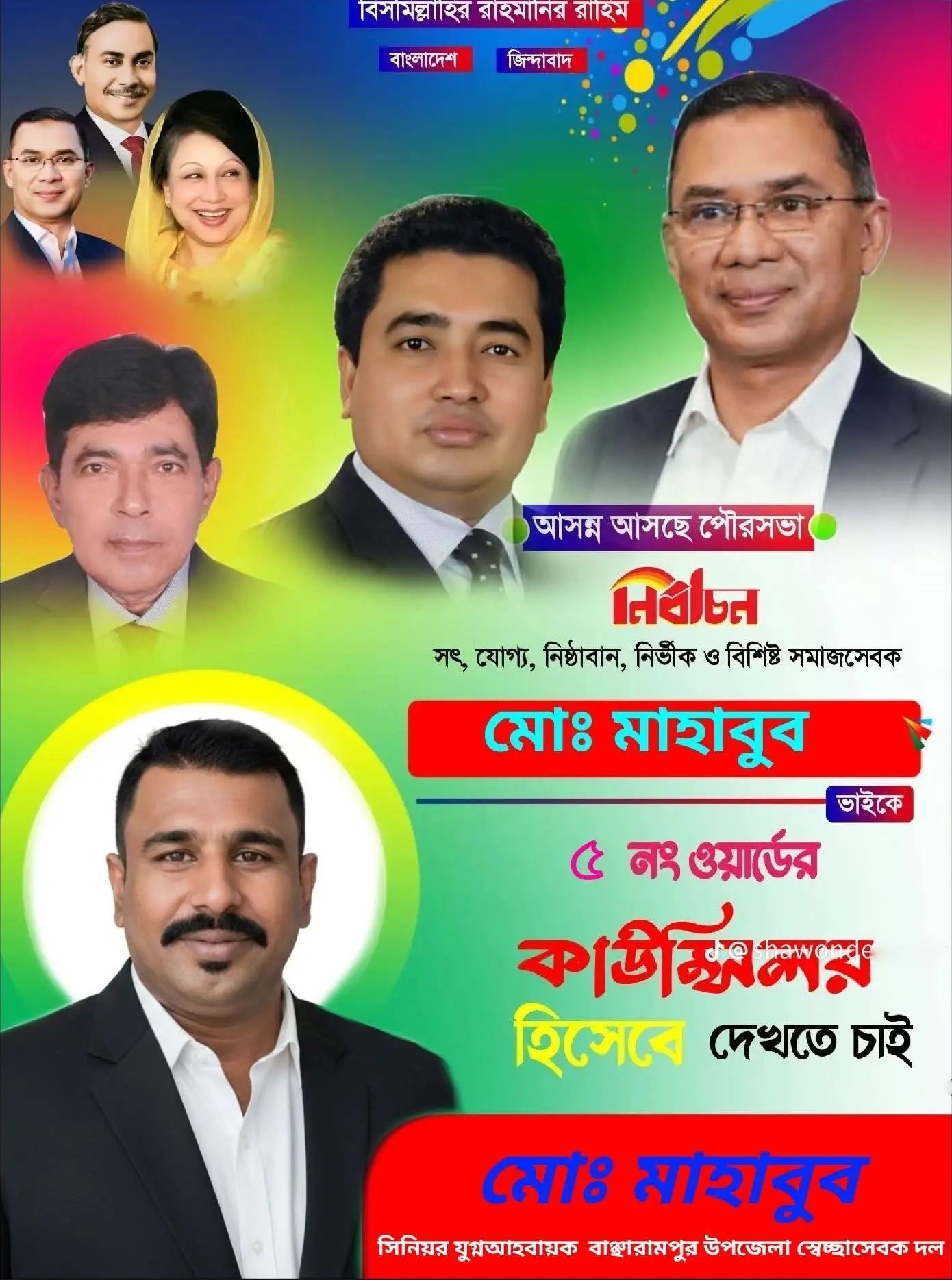 সম্ভাব্য কাউন্সিলর পদে আলোচনায় আছে ১নং ওয়ার্ডে মাহবুব হাসান বাবু, ২নং ওয়ার্ডে রফিকুল ইসলাম সেন্টু, ৩নং ওয়ার্ডে মো. বাবুল মিয়া, ৪নং ওয়ার্ডে নাজের আলী, সাহাদাত সরকার, ৫নং ওয়ার্ডে সালাউদ্দিন আহমেদ বাসু, মো. মাহবুব, ৭নং ওয়ার্ডে হেলাল আহমেদ, ৯নং ওয়ার্ডে মো. বিল্লাল হোসেন, ৪,৫ ও ৬নং ওয়ার্ডে মহিলা কাউন্সিল পদে পৌর মহিলা দলের সাধারণ সম্পাদক বিউটি আক্তার।