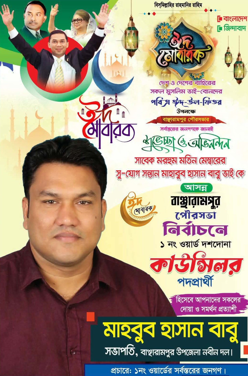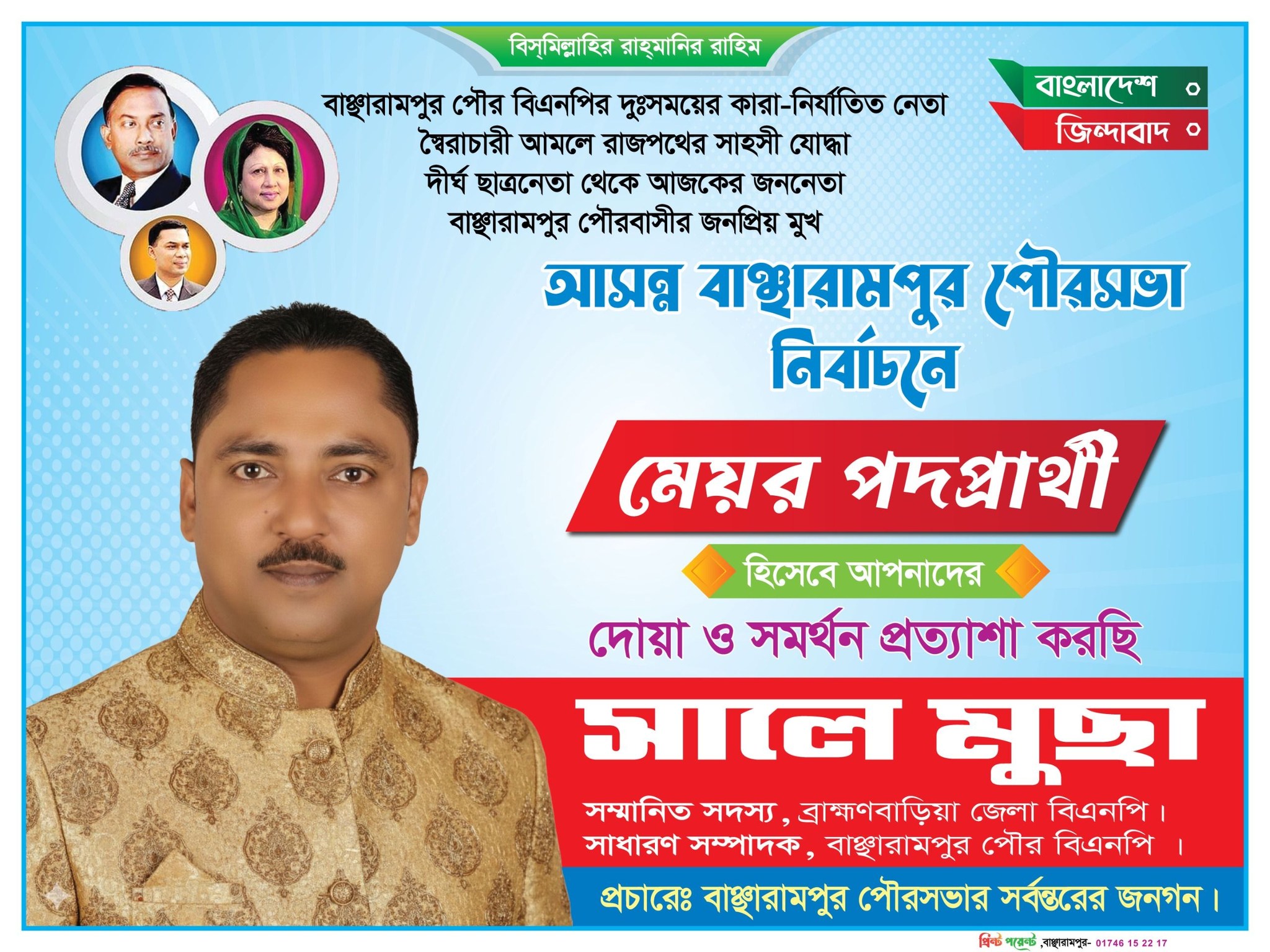 বর্তমান বিএনপি সরকার আগামী জুলাইয়ের মধ্যে পৌরসভার নির্বাচন করতে চায়। ইতোমধ্যে দেশের অনেক পৌরসভার মেয়াদই শেষ হয়ে গেছে। তারিখ কিংবা দিনক্ষণ এখনও চূড়ান্ত না হলেও বাঞ্ছারামপুর পৌরসভার সম্ভাব্য প্রার্থীরা বসে নেই। ইতোমধ্যে পোস্টার ব্যানার ও ফেস্টুন এবং সামাজিক যোগাযোগ মাধ্যমে নিজেদের অবস্থান জানান দিচ্ছে। বিভিন্ন কৌশলে তারা প্রচারণা চালিয়ে যাচ্ছে। তবে জনমত জরিপে প্রচার প্রচারণা ও সামাজিক যোগাযোগ মাধ্যমে এখন পর্যন্ত এগিয়ে আছেন বাঞ্ছারামপুর উপজেলা ছাত্রদলের সাবেক সাধারণ সম্পাদক, বর্তমানে গণসংহতি আন্দোলন বাঞ্ছারামপুর উপজেলা শাখার প্রধান সমন্বয়ক শামিম শিবলী। পৌরসভায় তার অবস্থান বেশ সুদৃঢ়। তিনি বীর মুক্তিযোদ্ধা শরীফুল ইসলাম শরীফ মাস্টারের ছেলে।
