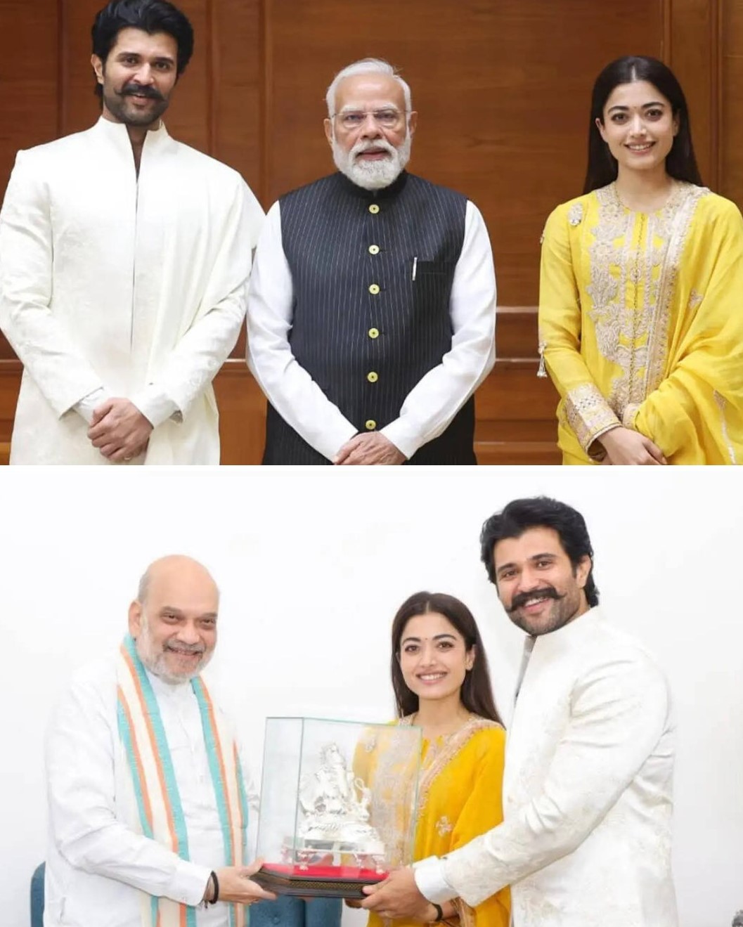 অন্যদিকে, স্বরাষ্ট্রমন্ত্রী অমিত শাহ এই দম্পতিকে আশীর্বাদস্বরূপ একটি গণেশ মূর্তি উপহার দিয়েছেন। বিজয় জানান, সেই উপহারটি বর্তমানে তাদের বাড়ির প্রার্থনাকক্ষে রাখা হয়েছে। স্বরাষ্ট্রমন্ত্রীর সঙ্গে তাদের ভারতীয় সিনেমা নিয়ে ফলপ্রসূ আলোচনা হয়েছে বলেও তিনি উল্লেখ করেন।