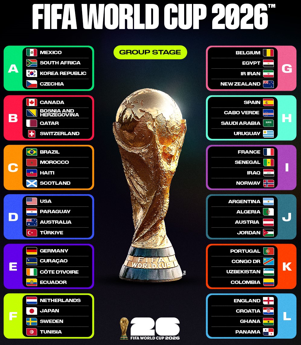 এ ছাড়া ‘আই’ গ্রুপে সাবেক বিশ্বচ্যাম্পিয়ন ফ্রান্স ছাড়াও ইরাকের প্রতিদ্বন্দ্বী নরওয়ে ও সেনেগাল। ১৬ জুন ফক্সবোরোতে ইরাক প্রথম ম্যাচ খেলবে নরওয়ের সঙ্গে। আন্তঃমহাদেশীয় প্লে-অফের ফাইনালে লাতিন আমেরিকার দেশ বলিভিয়াকে ২-১ ব্যবধানে হারায় এশিয়ান দেশটি। আগামী ১১ জুন থেকে ১৯ জুলাই পর্যন্ত যুক্তরাষ্ট্র, মেক্সিকো ও কানাডায় বিশ্বকাপ অনুষ্ঠিত হবে। প্রথমবারের মতো ৪৮ দলের এই আসরে হবে ১০৪টি ম্যাচ।